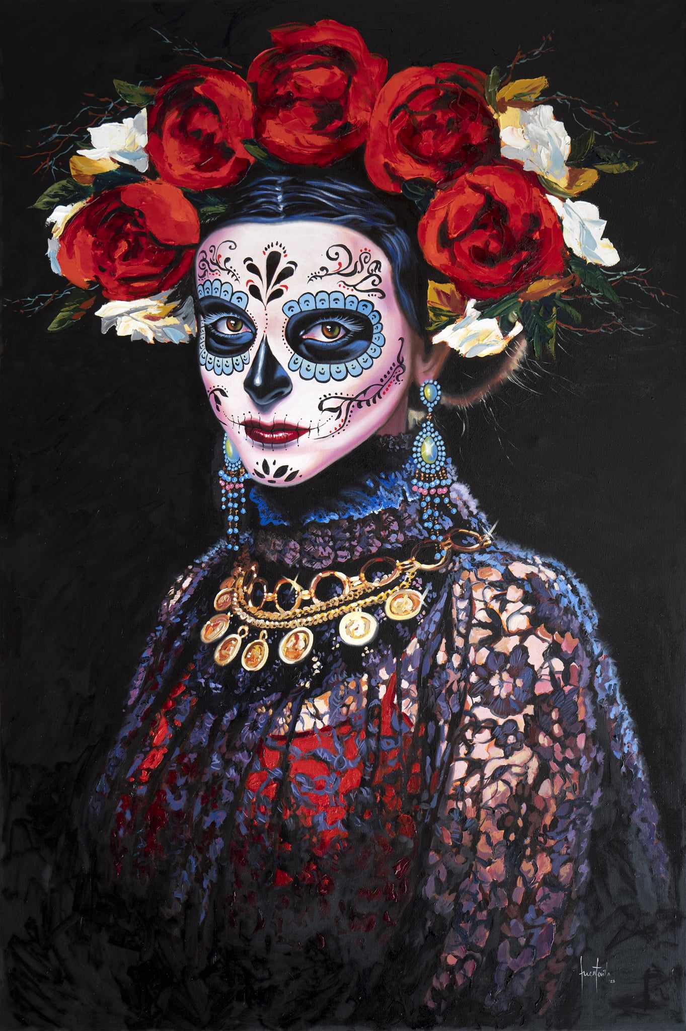 La creación de esta obra fue un proceso de profunda reflexión, en el que traté de captar no sólo el significado cultural de la Catrina, sino también los temas universales del recuerdo y la resistencia. Los intrincados detalles de su atuendo, combinados con su mirada solemne, invitan a los espectadores a honrar sus vínculos con los seres queridos que han fallecido, atesorando su memoria.