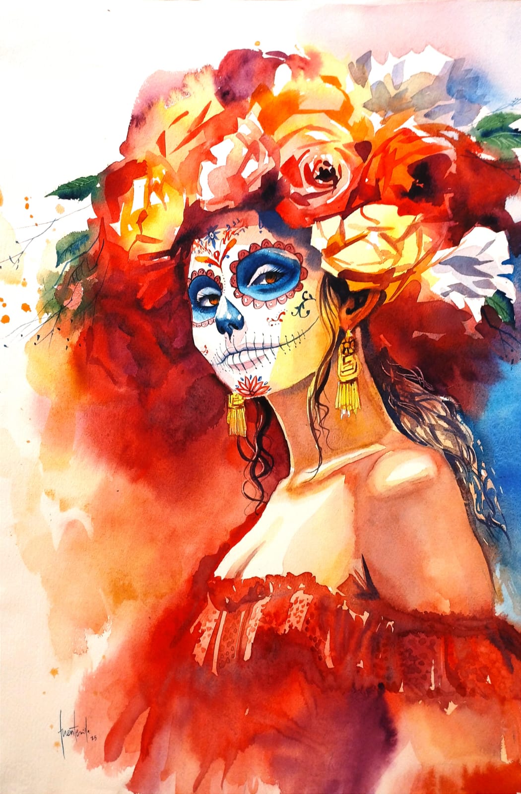 As a painter, Catrina Roja is my tribute to the beauty, elegance, and mystery of life and its ultimate end.