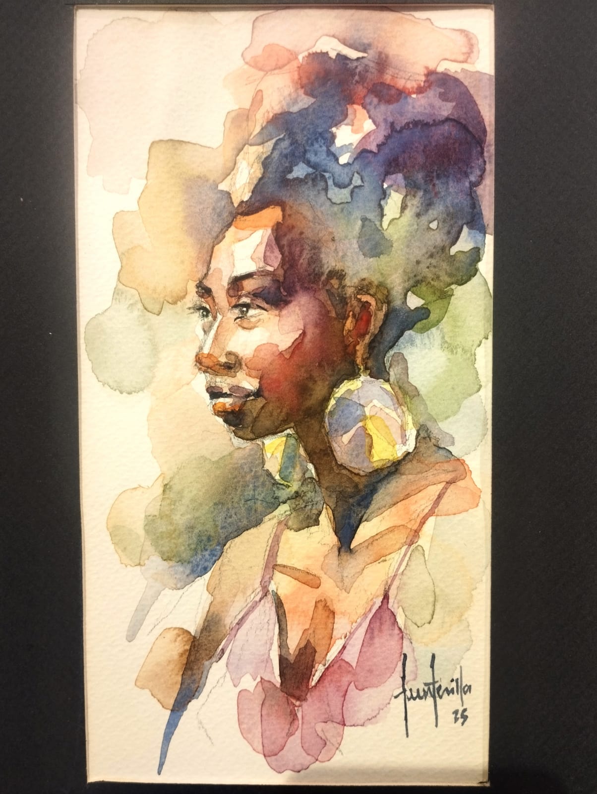 In Arracadas, I wanted to capture more than a portrait—I aimed to express presence through abstraction. Her earrings, large and golden, became the anchor point around which everything else dissolves into color and suggestion.