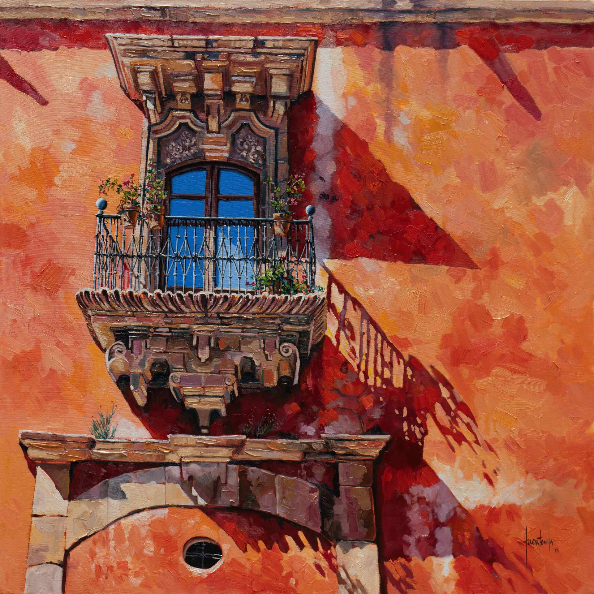 I chose to focus on this architectural detail because it exemplifies the beauty found in everyday scenes. The textured brushwork enhances the tactile quality of the aged walls and the ornate balcony railing, inviting viewers to feel the warmth of the sun and the quiet of the shaded areas.